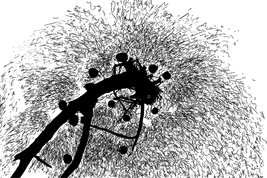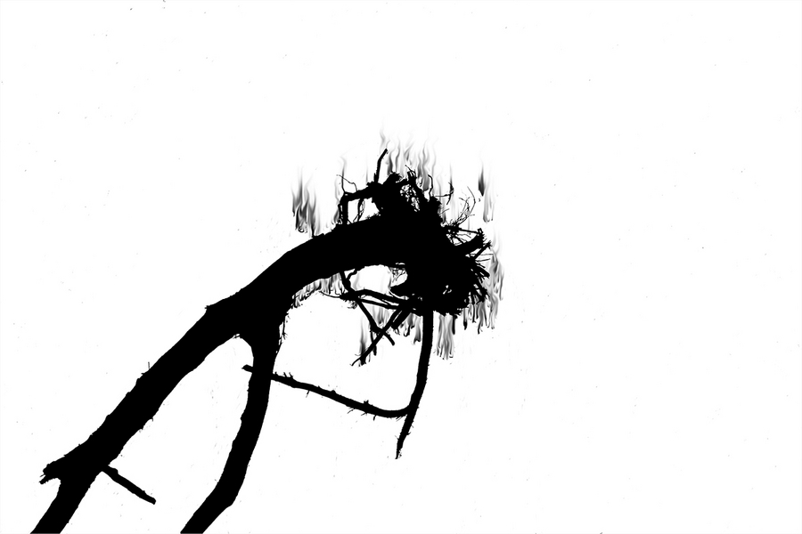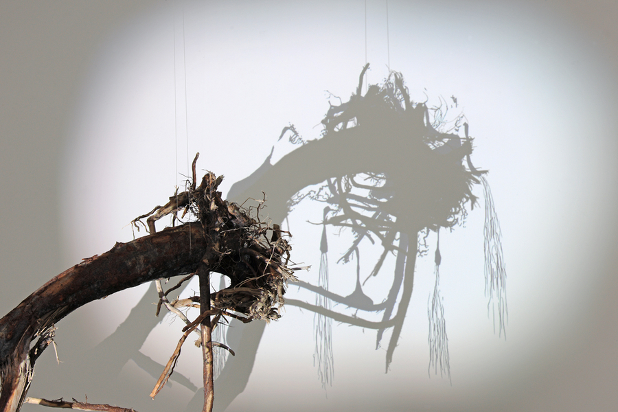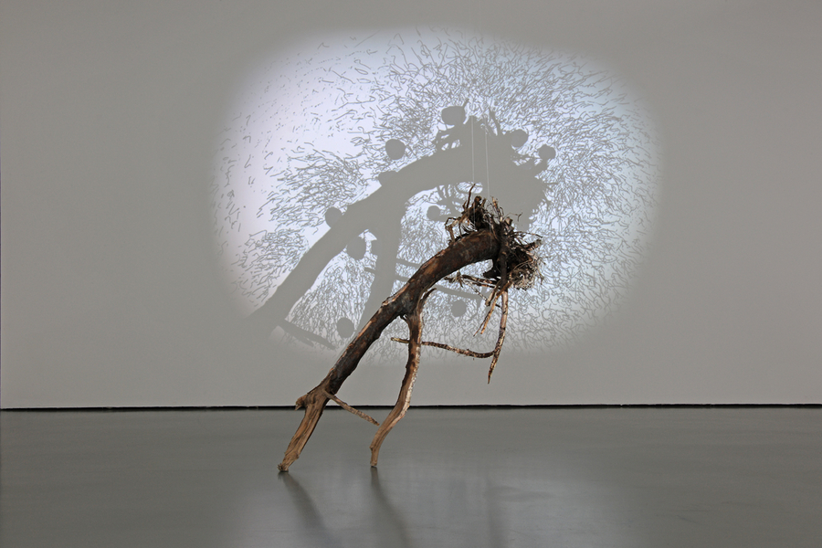 Animated Cartoon and wooden object, Videoprojection HDV 1080p, black and white, silent, 1min08s